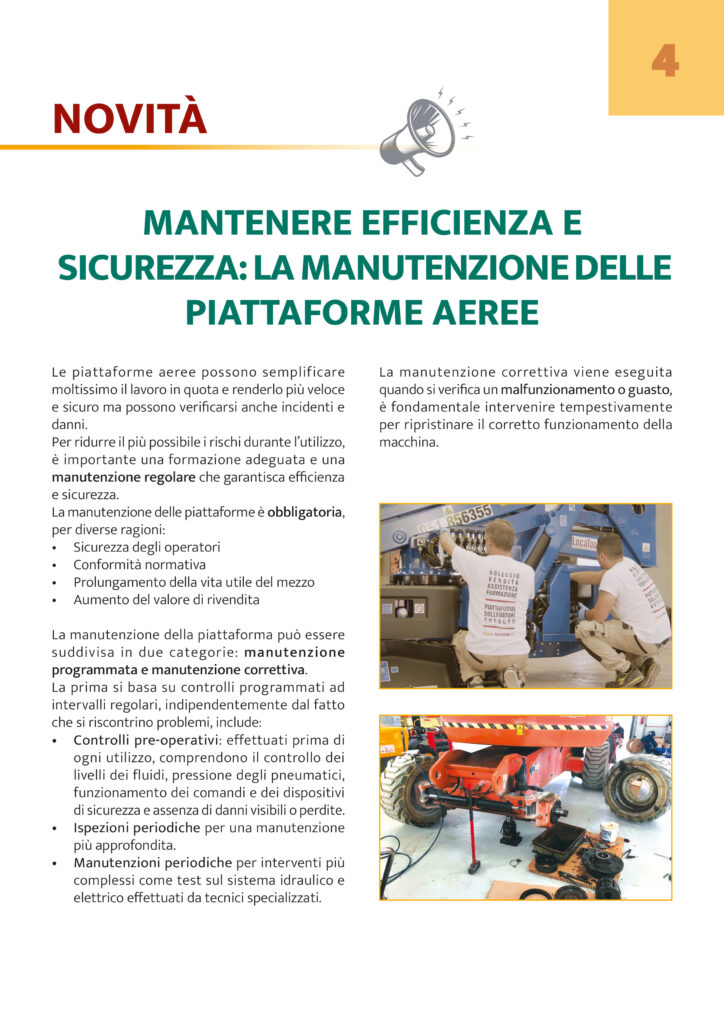 A ciò si aggiunge un altro aspetto cruciale: il supporto tecnico e operativo. Loca Top accompagna i propri clienti ben oltre il momento della consegna. Offre un servizio di consulenza professionale con sopralluoghi tecnici, per aiutare a individuare la piattaforma più adatta in base al terreno, all’altezza di lavoro richiesta e alle condizioni del cantiere. In caso di problemi durante l’utilizzo, è prevista anche assistenza tecnica direttamente sul posto, elemento fondamentale per ridurre tempi morti e interruzioni nei lavori. Non manca poi la possibilità di accedere a percorsi formativi specifici, pensati per chi deve operare con le piattaforme e necessità di conseguire il patentino PLE o altre certificazioni.