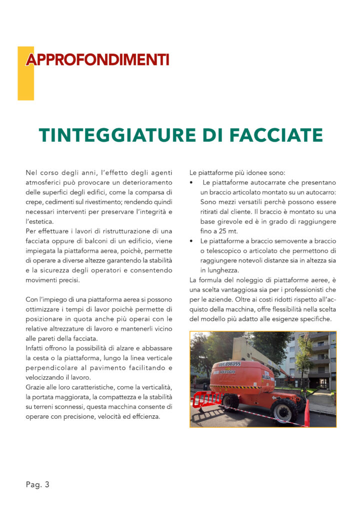 Le piattaforme aeree si suddividono in diverse tipologie, come le piattaforme semoventi verticali e le piattaforme articolate e telescopiche. La scelta dipende dal tipo di intervento e dal contesto architettonico.